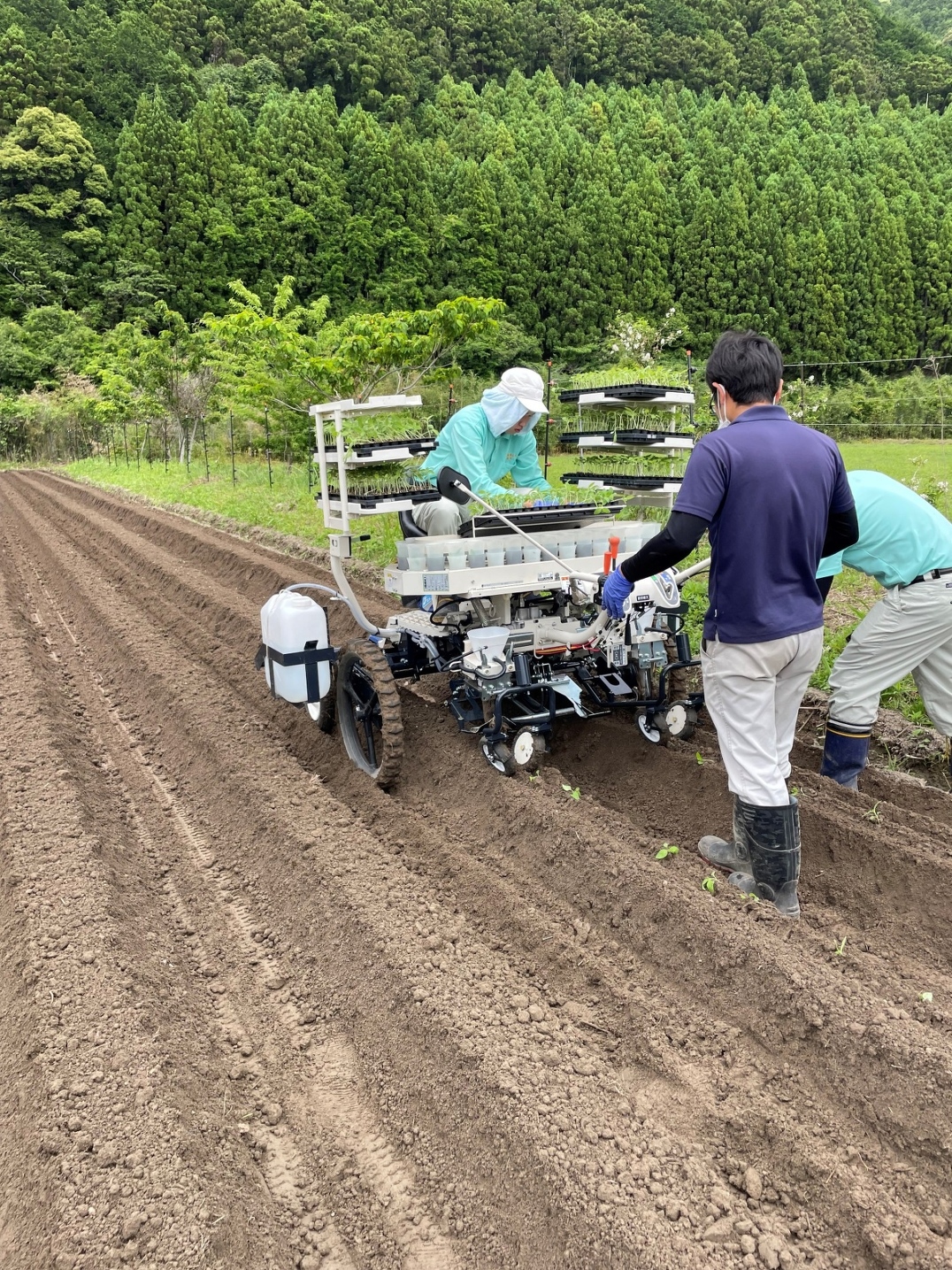 定植機は苗を入れると自動で苗を植えてくれる機械です。
