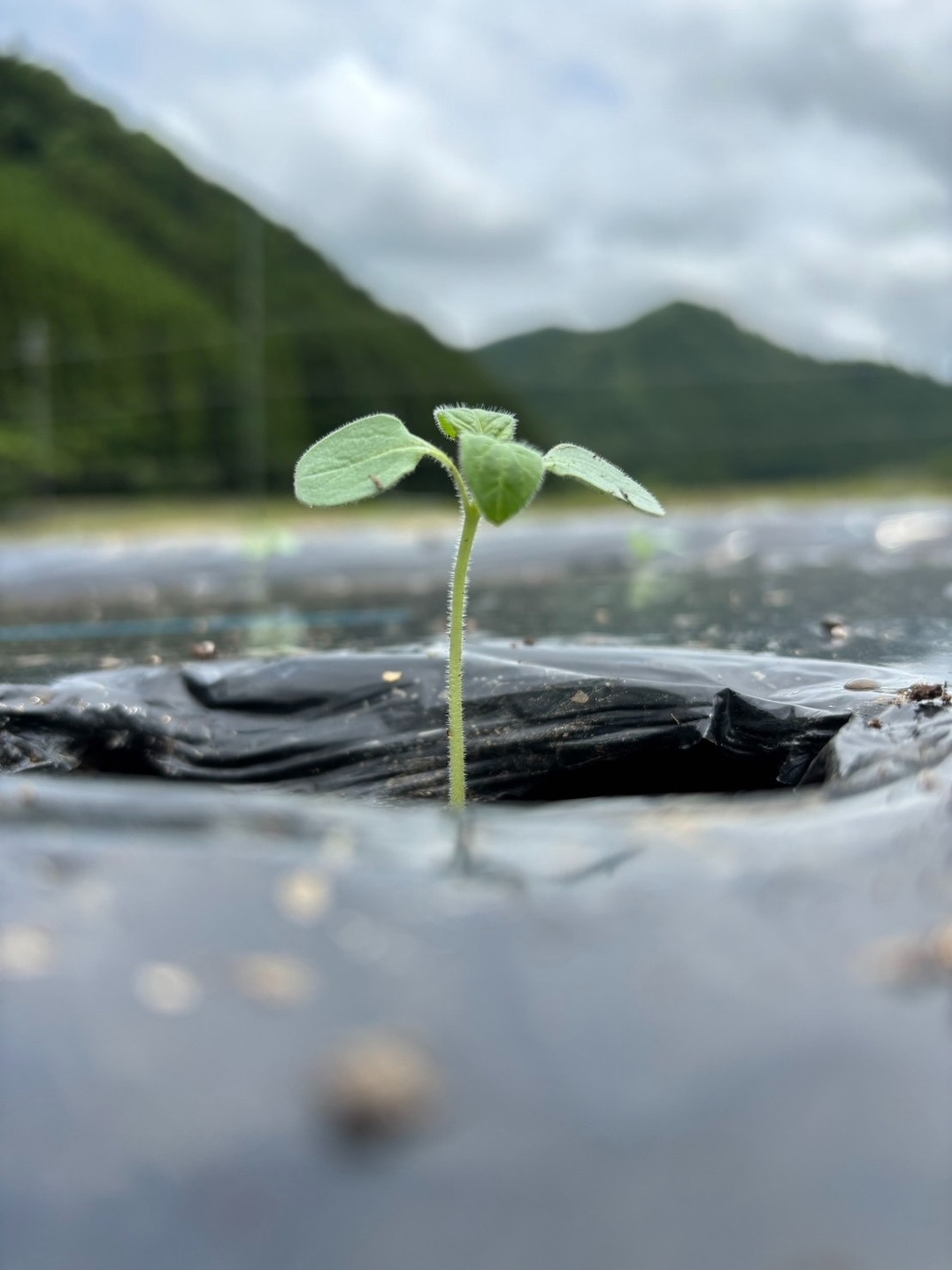 ハウスで育てていたごまの苗が成長したので、畑に植え替えをしました。