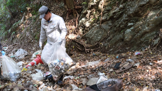 林道には、橋の上からペットボトルや空き缶などをはじめ様々なごみが不法投棄されており、山におけるごみ問題について知る機会になりました。