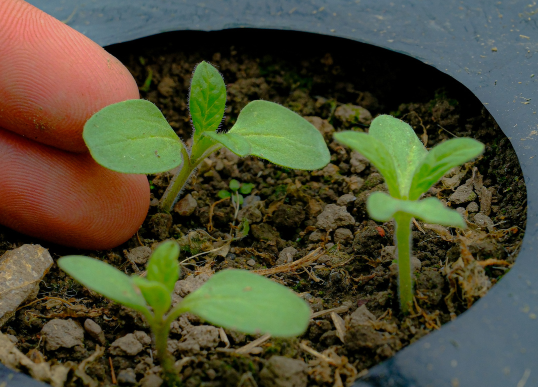 2週間前に植えたごまは、茎の長さが20mmまで成長しています!