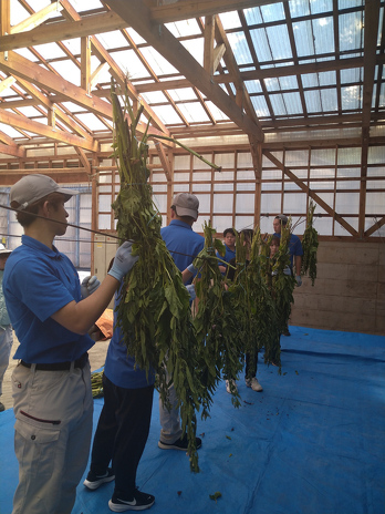 ごまを乾燥させるための小屋に運び、吊るす作業までを行いました。