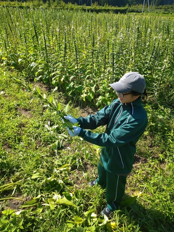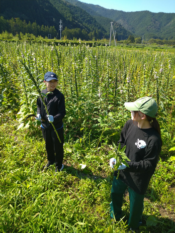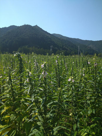 夏の間にごまの背丈はぐんぐんと伸び、大きなものだと人の背丈よりも大きく育ちました。