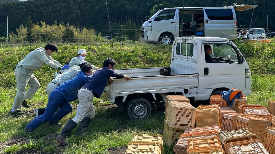 この上の写真は、トラックが圃場内で動かなくなった時の写真です。