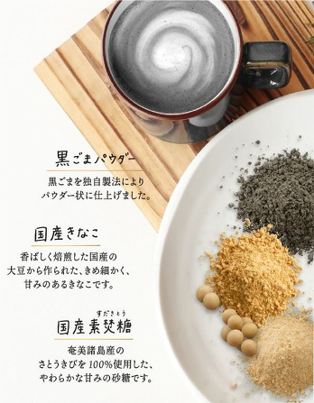 スーパーや百貨店でも販売をしておりますので、是非粉末飲料の棚で黒ごまラテを探してみてください。
