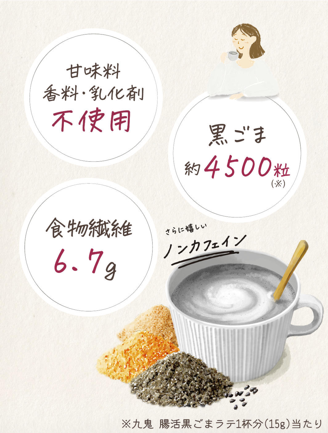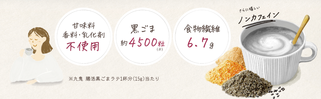 頑張った自分へ、ノンカフェインの黒ごまラテでホッとやすらぐひとときを。