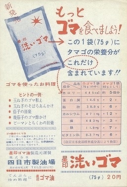 販路拡大を目指す取り組みは、営業拠点の広域化だけではありません。新たな商品として「いりごま・すりごま」の販売に着手します。1965年12⽉、搾油⼯場内にラインを設置し、⾷品ごまの製造を始めます。「洗いゴマ」「いりごま」は発売したものの、当時の設備では⽯や夾雑物の混⼊クレームが頻出してしまいます。そこで、翌年には本格的な⾷品⼯場を建設し、⼯程の⾒直しや設備投資による品質向上を図ることで安全安心な食品ごまの提供を実現します。また、1971年には「ねりごま」の製造販売を開始。栄養価が高いねりごまは、健康⾷ブームに乗って売り上げを伸ばします。