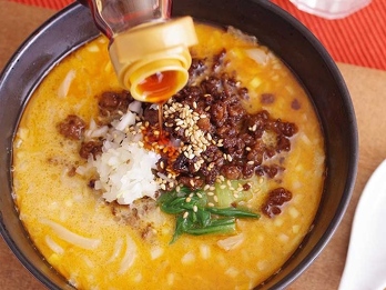 6種類の香辛料を香り高い一番搾りごま油のみで煮出した、旨みと辛味のごまラー油。