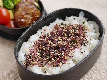 白いりごま(ごま(国産))、塩蔵赤しそ(赤しそ、食塩、梅酢)、梅肉(梅干、しそ梅酢)、食塩、昆布、わかめ